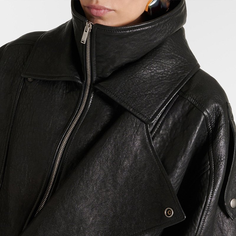 2025 New Women’s Leather Jacket Fashion Zipper Short Motorcycle Retro Coat