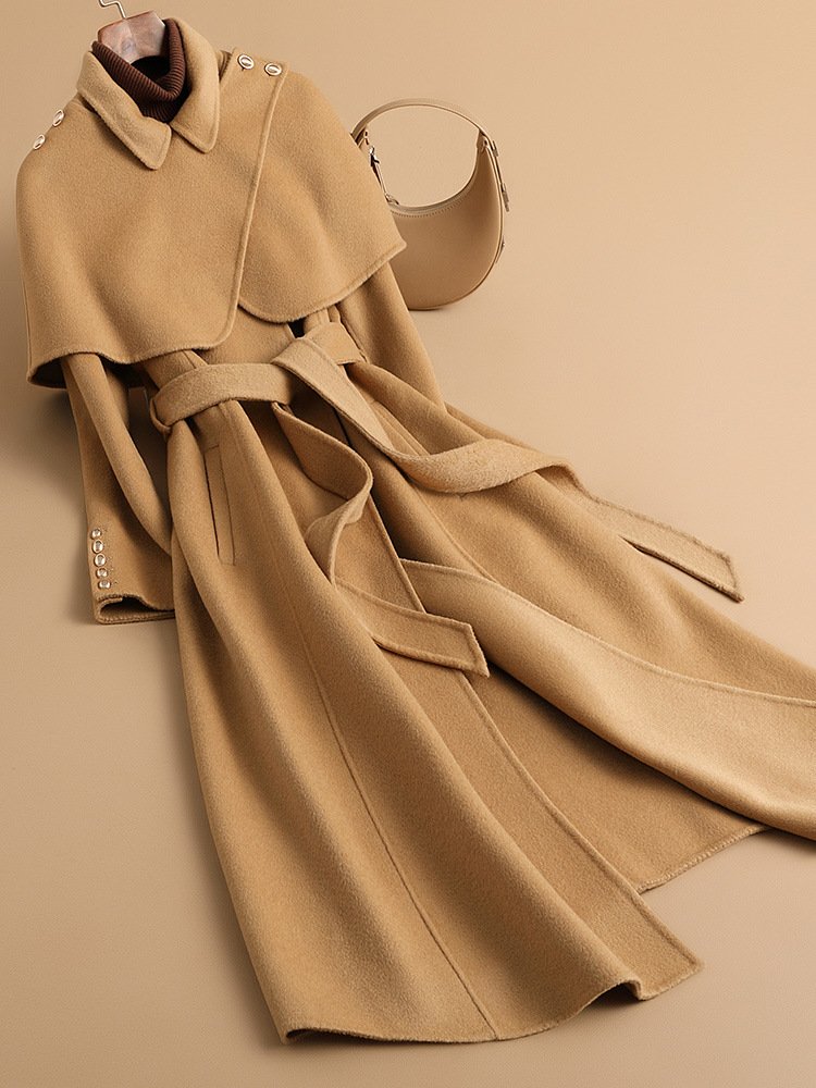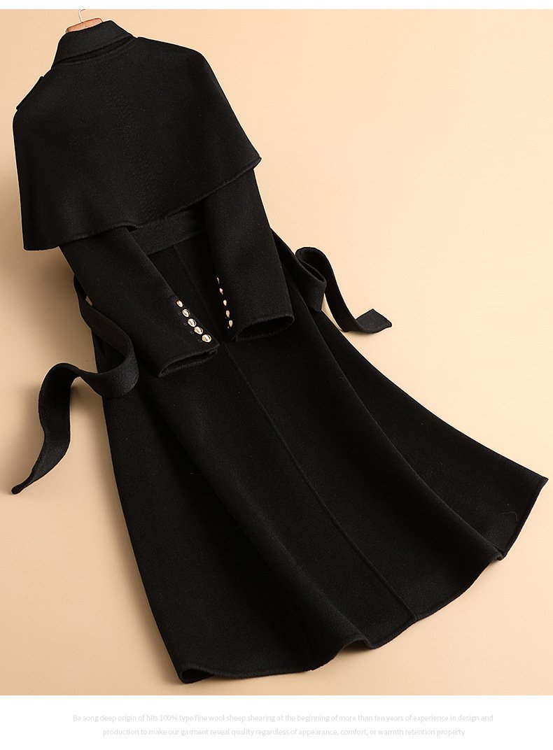 2025 autumn and winter new fashion cape woven wool coat women’s skirt mid-length coat