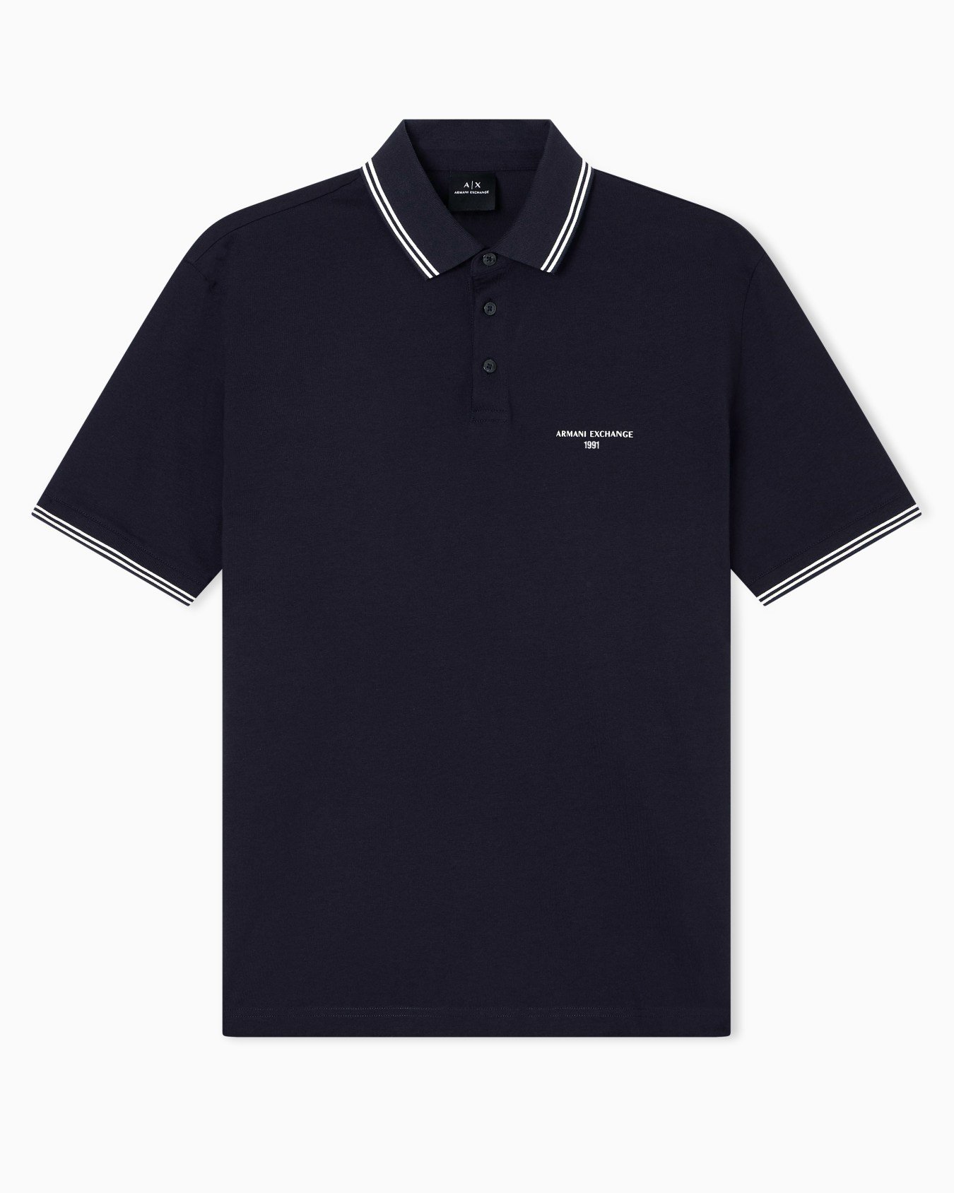 Polo shirt made of soft cotton jersey, a timeless classic reinterpreted with a cool and contemporary touch. This essential piece stands out for its refined details, such as the collar and sleeve edges with contrasting piping that add a graphic and sporty touch. The small Armani Exchange logo embroidered on the chest discreetly signs a versatile and always current look.