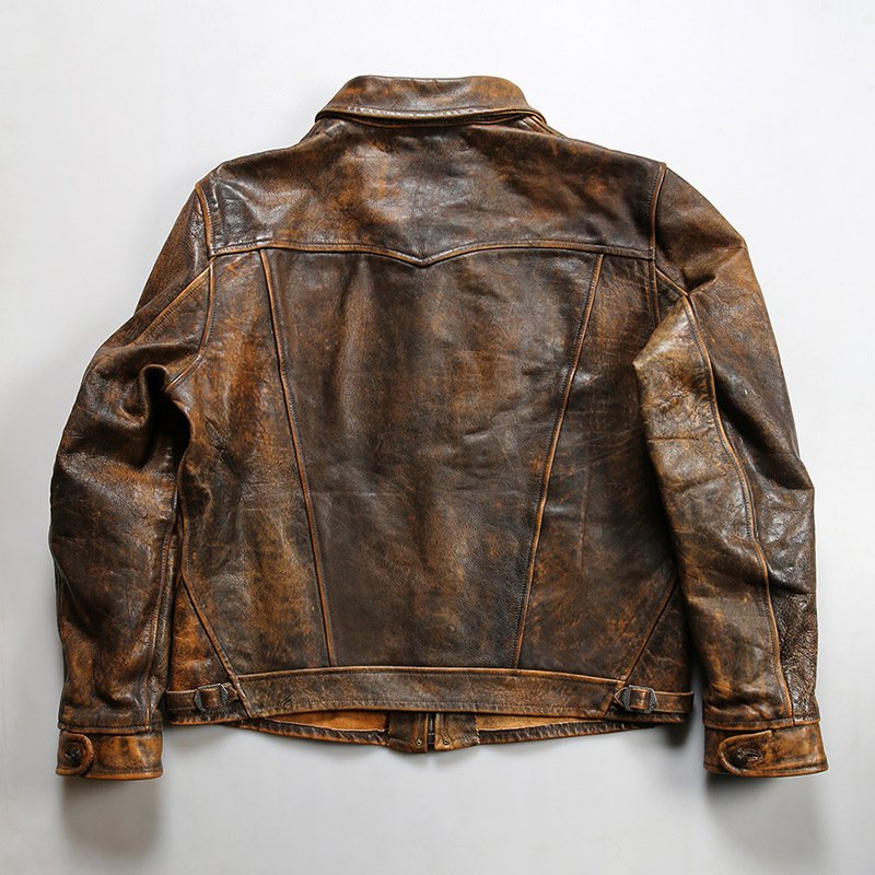 Replica RL Mendoza genuine leather jacket men’s lapel multi-pocket washed retro distressed American yellow cowhide leather jacket
