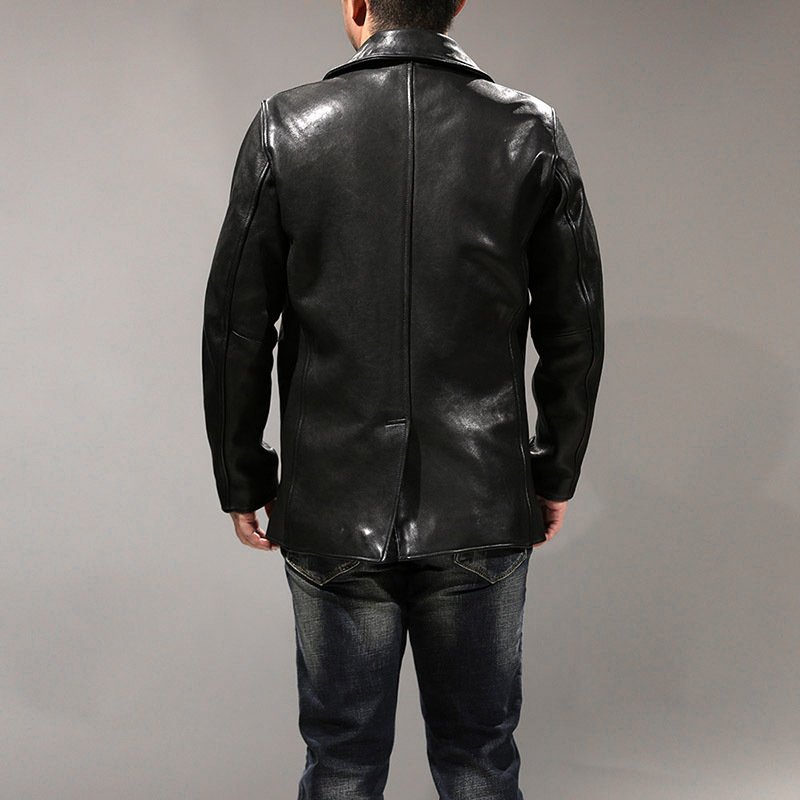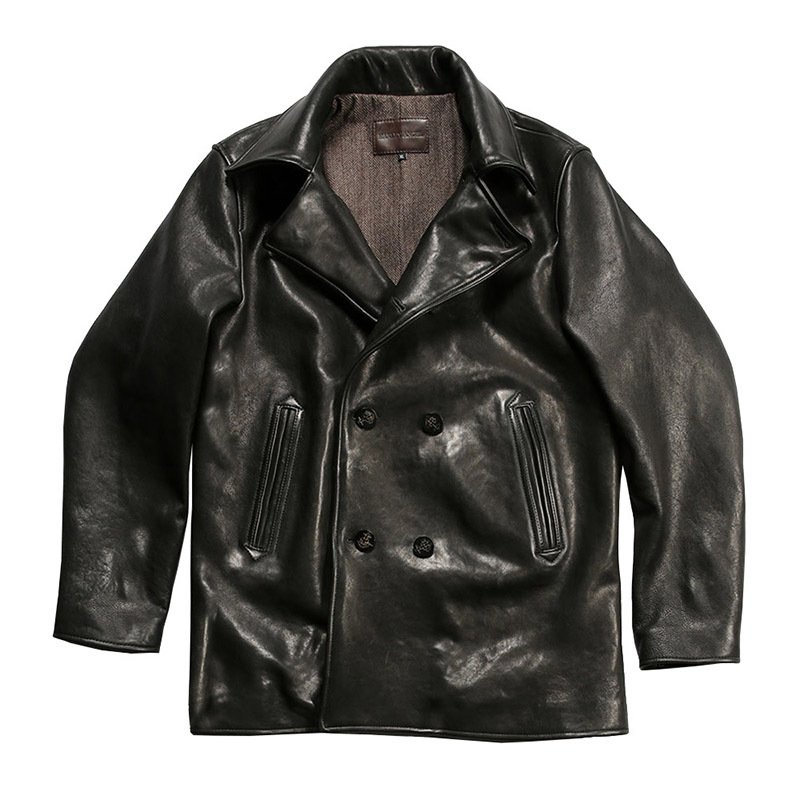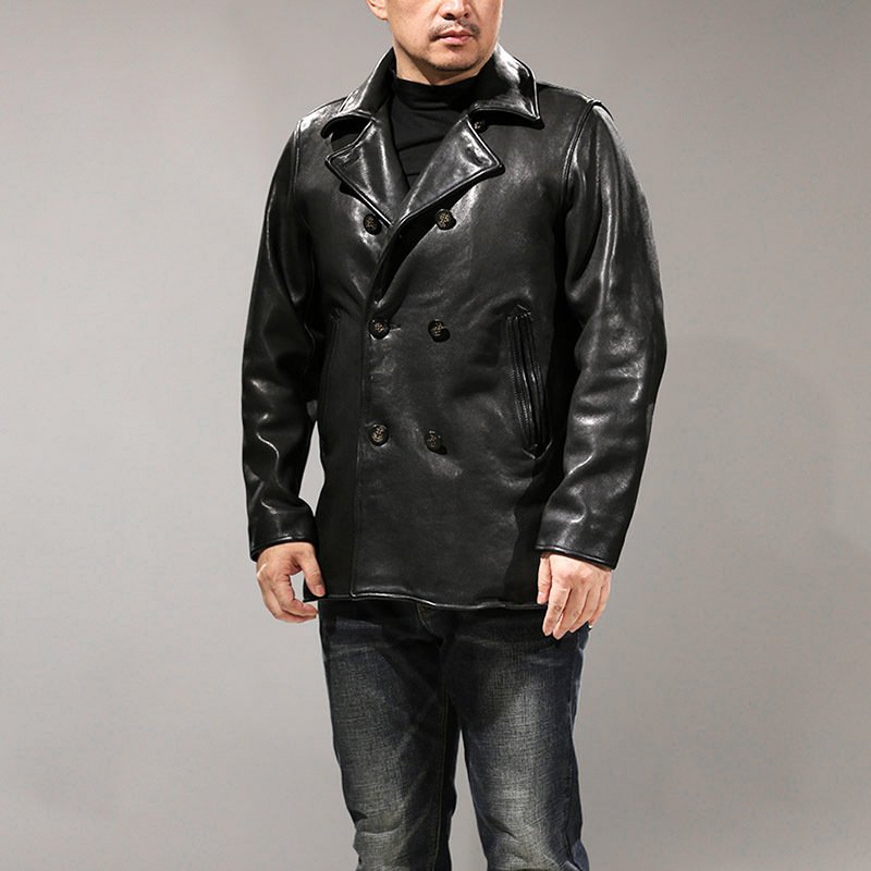 Stallone Navy 740 genuine leather coat men’s lapel double-breasted horn button heavy washed vegetable tanned sheepskin jacket