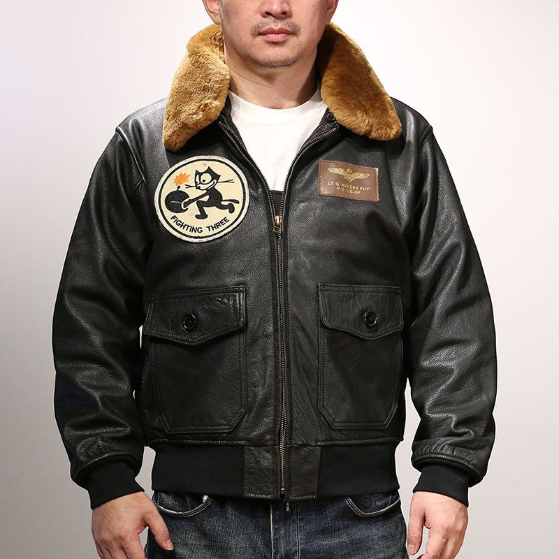 Felix Cat G1 Sea and Air Pilot Leather Jacket Men’s Casual Wool Collar Top Layer Cowhide Leather Jacket